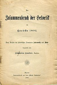 Lauter, Alphons: Der Zusammenbruch der Helvetik im Herbste 1802. Basel: Basler Volksblatt 1902. 8°. 37 S., Geheftet (angestaubt und abgegriffen)