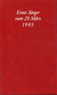 ![]() Ernst Jünger zum 29. März 1985. (Umschlag) |