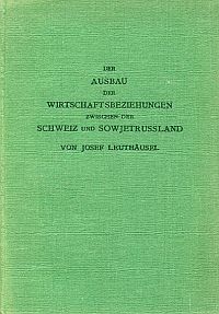 Leuthäusel, Josef: Der Ausbau der Wirtschaftsbeziehungen zwischen der Schweiz und Sowjetrußland. Öffentlicher Vortrag gehalten am 19. Juli 1932 im großen Safransaal in Basel auf Einladung der parteipolitisch neutralen „Schweizerischen Gesellschaft: Das Neue Russland“. Basel: Frobenius 1932. 8°. 40 S., Leinen (altersgemäss gut erhalten)