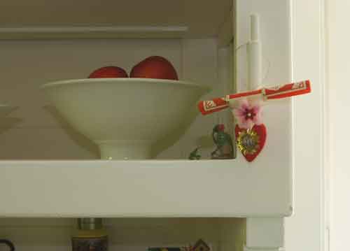 bildreich karten PK 649: pfirsichduett. Querformat. (Regal, Schale, Obstschale, Pfirsich, Herz, Figut, Affe, Botschaft) Mindestbestellmenge: 15 Karten (auch assortiert).