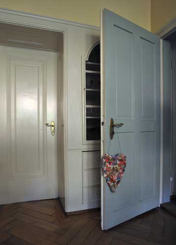 bildreich karten PK 874: herzlich willkommen. Hochformat. (Türe, Herz, Advent, Heiligberg, Vitrine, Parkett, Einladung)