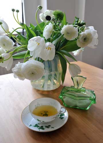 bildreich karten PK 905: fruehlingstee. Hochformat. (Tulpen, Tulpenstrauss, Vase, Tisch, Zucker, Pause, Küche, Garten) Mindestbestellmenge: 15 Karten (auch assortiert).