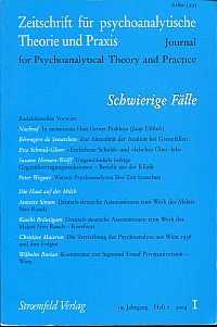Schwierige Fälle. Frankfurt/Main: Stroemfeld 2004. 8°. 154 S., broschiert (Einband mit leichten Gebrauchsspuren; leicht parfümiert; sonst gut erhalten) (=Zeitschrift für psychoanalytische Theorie und Praxis; 19. Jahrgang, Heft 1/2004)