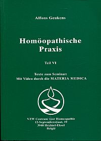 Geukens, Alfons: Homöopathische Praxis. Texte zum Seminar: mit Video durch die Materia Medica [Hauptbd.,] Teil 6. Hechtel-Eksel: VZW Centrum voor Homeopathie 1992. 8°. 435 S., broschiert (Einband mit leichten Gebrauchsspuren; gut erhalten)