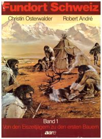 Osterwalder, Christin/André, Robert (Ill.): Von den Eiszeitjägern zu den ersten Bauern. 3. Auflage. Aarau: Aare 1982. 4°. 124 S., durchgehend zum Teil farbige Abbildungen, Pappband (Schutzumschlag mit Randläsuren; gut erhalten) (=Fundort Schweiz; 1)