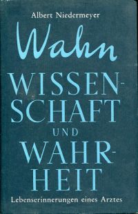 Niedermeyer, Albert: Wahn, Wissenschaft und Wahrheit. Lebenserinnerungen e. Arztes. Innsbruck: Tyrolia 1956. 8°. 535 S., Leinen mitg Kopffarbschnitt (Schutzumschlag mit leichten Randläsuren; gut erhalten)