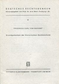 Savigny, Friedrich Carl von: Grundgedanken der historischen Rechtsschule. 1814/40. (3. Aufl.). Frankfurt/Main: Klostermann 1965. 8°. 40 S., Broschiert (gut erhalten) (=Deutsches Rechtsdenken, 8)