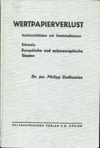 Cudkowicz, Philipp: Wertpapierverlust. Rechtsverhältnisse und Schutzmassnahmen ; Schweiz. Europäische und außereuropäische Staaten. Zürich: Polygraphischer Verlag (1941). Gr.-8°. 355 S., Leinen (Bibliotheksexemplar; Stempel auf Titelblatt; Papier altersbedingt leicht gebräunt; altersgemäss gut erhalten)