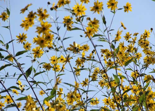 bildreich karten PK 798: sonnengelb und himmelblau. Querformat. (Himmel, Blüten, Garten) Mindestbestellmenge: 15 Karten (auch assortiert).
