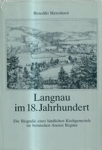 Bietenhard, Benedikt: Langnau im 18. Jahrhundert. Die Biografie einer ländlichen Kirchengemeinde im bernischen Ancien régime. Langnau: Eigenverlag 1988. Gr.-8°. 347 S., Leinen (private Widmung des Autors auf Vorsatz; Schutzumschlag mit leichten Randläsuren; Buchblock leicht verzogen; sonst gut erhalten)