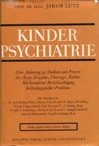 Lutz, Jakob: Kinderpsychiatrie. Eine Anleitung zu Studium und Praxis für Aerzte, Erzieher, Fürsorger, Richter mit besonderer Berücksichtigung heilpädagogischer Probleme. 2., ergänzte und erweiterte Aufl. Zürich: Rotapfel 1964. Gr.-8°. 420 S., Anhang, Glossar, Register, engl. broschiert (Schutzumschlag mit Randläsuren und Fehlstelle ohne Textverlust; sonst gut erhalten)