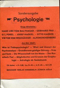 Psychologie. Einsiedeln: Benziger 1948. 8°. S. 633-808. broschiert (=Schweizer Rundschau. Sonderausgabe, 48, 8/9) Einige Mitarbeiter: Hans Urs von Balthasar, Gebhard Frei, O. L. Forel, Josef Haekel, Otto Karrer, Viktor von Weizsäcker, Alfons Rosenberg.