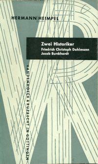 Heimpel, Hermann: Zwei Historiker. Friedrich Christoph Dahlmann, Jacob Burckhardt. Göttingen: Vandenhoeck & Ruprecht 1962. 8°. 84 S., engl. broschiert (gut erhalten) (=Kleine Vandenhoeck-Reihe, 141)