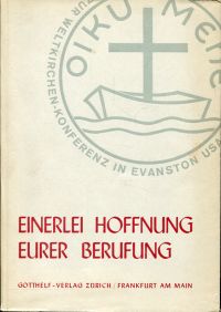 Einerlei Hoffnung eurer Berufung. Sammelband der Studienhefte zur Zweiten Vollversammlung des Ökumenischen Rates der Kirchen ; Evanston, Illinois, USA, 1954. 1. Aufl. Zürich: Gotthelf 1954. 8°. 441 S., engl. broschiert (Besitzervermerk auf Vorsatz; leicht angebräunt; sonst gut erhalten)