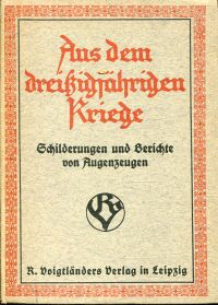 Krügel, Gerhard: Aus dem dreißigjährigen Kriege. Schilderungen und Berichte von Augenzeugen. Leipzig: Voigtländer [ca. 1930]. 8°. VIII, 198 S., zahlreiche Illustrationen, Pappband mit Farbkopfschnitt (Einband angebräunt; gut erhalten)