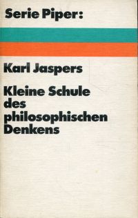 Jaspers, Karl: Kleine Schule des philosophischen Denkens. [Vorlesungen, gehalten im 1. Trimester d. Studienprogramms d. Bayer. Fernsehens]. 6. Aufl., Neuausg. 1974, 2. Aufl. dieser Ausg., 44. – 47. Tsd., 11. – 14. Tsd. d München: Piper 1977. 8°. 183 S., broschiert (Papierbedingt gebräunt; gut erhalten) (=Serie Piper ; 54)