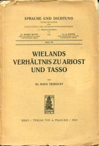 Tribolet, Hans: Wielands Verhältnis zu Ariost und Tasso. Bern: Francke 1919. 8°. 108 S., Broschiert (Umschlag angestaubt und mit Randläsuren; Seiten teilweise nicht beschnitten) (=Sprache und Dichtung; 22)