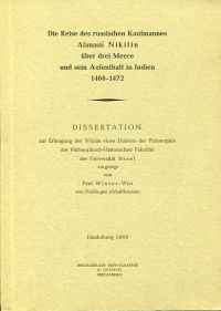 Winter-Wirz, Paul: Die Reise des russischen Kaufmannes Afanasii Nikitin über drei Meere und sein Aufenthalt in Indien 1466-1472. Heidelberg 1960. 8°. 209 S., broschiert (Papierbedingt leicht gebräunt; gut erhalten) (=Dissertation Basel 1960)