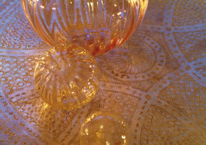 bildreich karten PK 129: lichtkugeln II. Querformat. 2005. (Weihnachtsschmuck, Kristall, Glas, Kugeln, Weihnachtskugeln, Licht, Kerzenlicht)