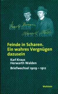 Kraus, Karl/Walden, Herwarth/Avery, George C. (Hrsg.): Feinde in Scharen. Ein wahres Vergnügen dazusein. Briefwechsel 1909 – 1912. Göttingen: Wallstein 2002. 675 S., sw-Abbildungen, Leinen (Mängelstempel auf Buchblock; SU leicht berieben; gut erhalten) (=Veröffentlichungen der Deutschen Akademie für Sprache und Dichtung Darmstadt ; 79) Schon kurze Zeit nachdem Karl Kraus (1874-1936) den Berliner Komponisten und Schriftsteller Herwarth Walden (1878-1941) kennengelernt hatte, entwickelte sich eine enge Zusammenarbeit zwischen beiden. Als Walden Anfang 1910 im Streit die Redaktion der Halbmonatsschrift »Das Theater« verließ, ermöglichte ihm Kraus durch finanzielle Unterstützung die Gründung einer eigenen Zeitschrift: Am 10. März 1910 erschien die erste Nummer des »Sturm«, die sich schon bald zum publizistischen Zentrum der damals jüngsten Literatur und Kunst in Deutschland entwickelte.