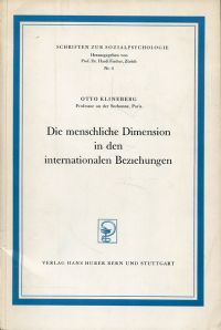 Klineberg, Otto: Die menschliche Dimension in den internationlen Beziehungen. Aus dem Engl. übers. v. Helmut Richter. Bern: Hans Huber 1966. Gr.-8°. 168 S., broschiert (Einband mit Gebrauchsspuren; Papierbedingt leicht gebräunt; sonst gut erhalten)