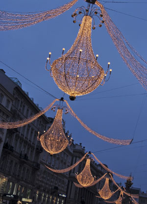 bildreich karten PK 495: glorios. Hochformat. (Weihnachtsdekoration, Weihnachtsbeleuchtung, Wien, Kronleuchter) Mindestbestellmenge: 15 Karten (auch assortiert).