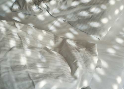 bildreich karten PK 897: sommerbett. Querformat. (Bett, Sonne, Sonnenflecken, Lichtflecken, Sonnenschutz, Storen)
