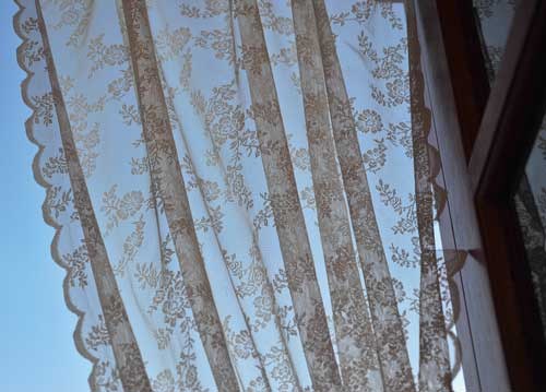 bildreich karten PK 900: spitzengardinen. Querformat. (Vorhang, Spitze, Himmel, Fenster) Mindestbestellmenge: 15 Karten (auch assortiert).