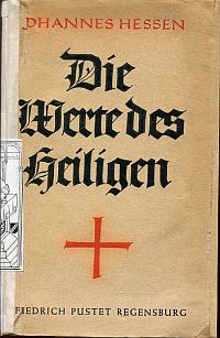 Hessen, Johannes: Die Werte des Heiligen. Eine neue Religionsphilosophie. Regensburg: Pustet 1938. 8°. 282 S., Engl. broschiert mit Cellophaneinfassung (Besitzervermerk auf Vorsatz; Ex Libris auf Innendeckel; reparierte Scharniere; Papier altersbedingt leicht gebräunt; sonst altersgemäss gut erhalten)