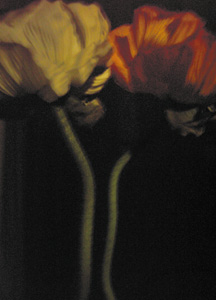 bildreich karten PK 246: nachtberührt. Hochformat. 2006. (Mohn, Klatschmohn, Paar, Traum, Schatten, Nacht)