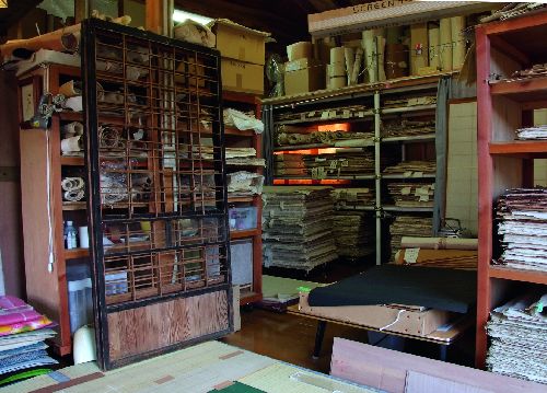 bildreich karten PK 552: papierlager, yasuo kobayashi, japan. Querformat. (Papier, Papieratelier, Lager, Washi, Papiermacher)