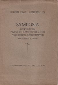 Kretschmer, Ernst und E. D. Wiersma: Beziehungen zwischen somatischen und psychischen Eigenschaften. (Symposia). Groningen [1926]. Gr.-8°. 8 S., Geheftet (Gebrauchsspuren; sonst gut erhalten)