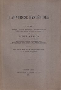Masson, Raoul: L’amaurose hystérique. Neuchâtel: Attinger frères 1911. 8°. 74 S., 1 Abbildung, Broschiert (private Widmung auf Vorsatz; altersgemäss gut erhalten) (=Thèse Lausanne 1911)