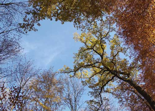 bildreich karten PK 736: pantheon. Querformat. (Wald, Baum, Herbstfärbung, Baumkronen, Himmel)