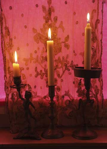 bildreich karten PK 775: festliches ensemble. Hochformat. (Kerzen, Kerzenständer, Leuchter, Advent, Vorhang, Fenster, Fensterbrett, 3, Trio) Mindestbestellmenge: 15 Karten (auch assortiert).