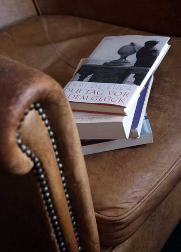 bildreich karten PK 836: der tag vor dem glück““. Hochformat. (Sessel, Leder, Bücher, Glück, Ferien, Urlaub, Nieten)