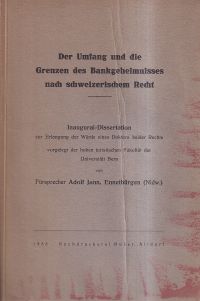 Jann, Adolf: Der Umfang und die Grenzen des Bankgeheimnisses nach schweizerischem Recht. Altdorf: Huber 1938. 8°. X, 158 S., Broschiert (private Widmung auf Titelblatt; Einband mit leichten Gebrauchsspuren; altersgemäss gut erhalten)